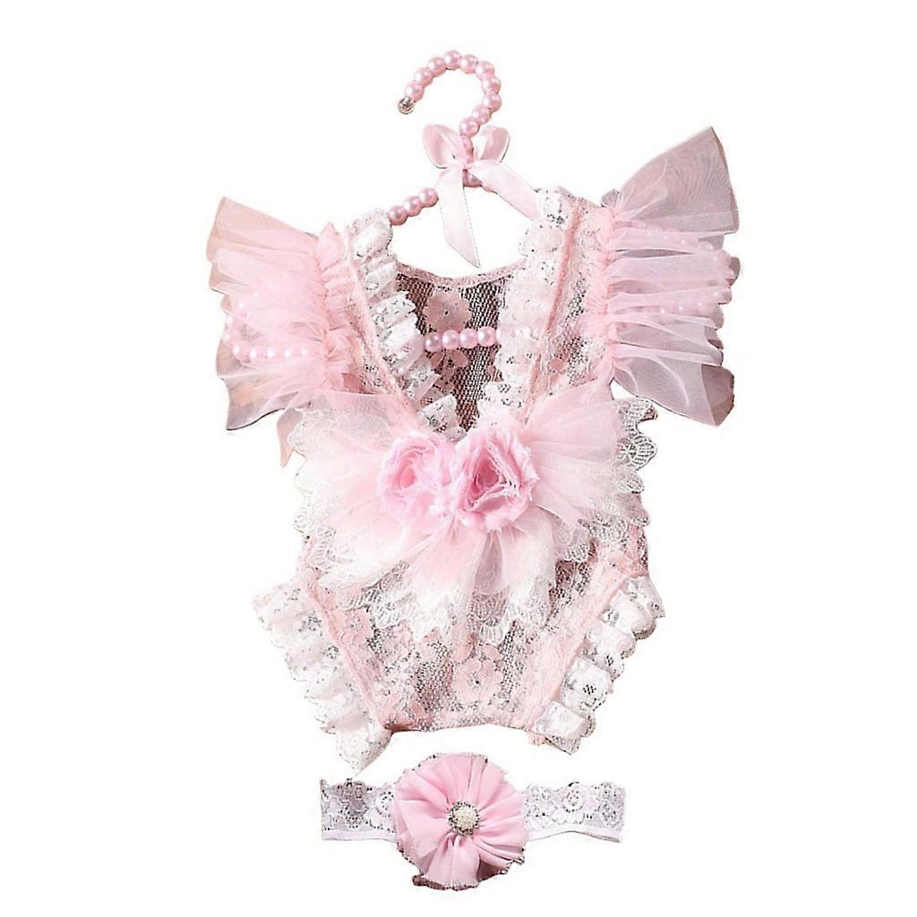 Baby Photo Clothing Short Jumpsuit & Flower Headdress Set Newborn Photo Romper Infant Party Wear Photo Pose Accessories