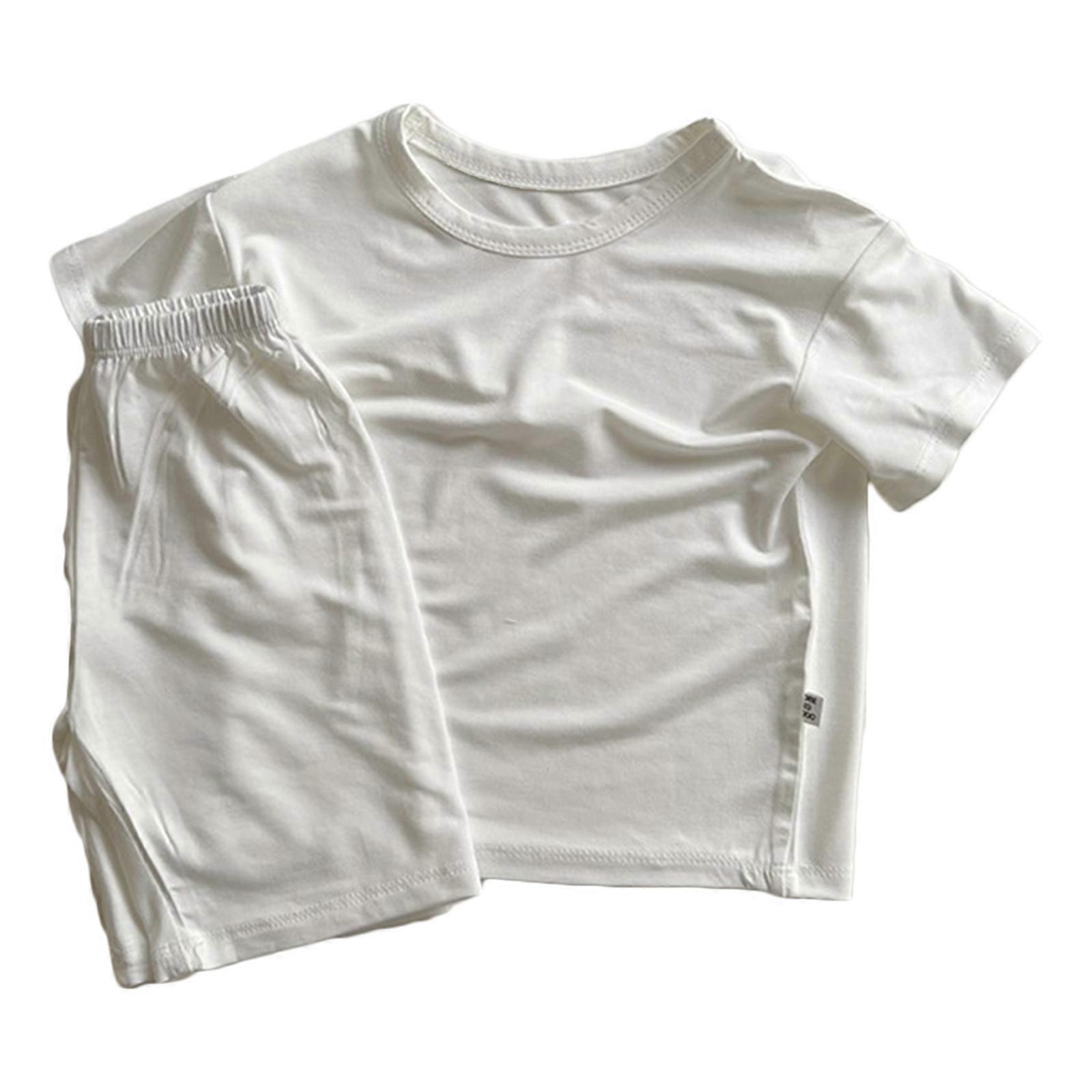 Baby Summer Clothing Toddler Suit Short Sleeved Crewneck T-Shirt & Shorts for Boys Girl Air Conditioned Room Clothes Set White