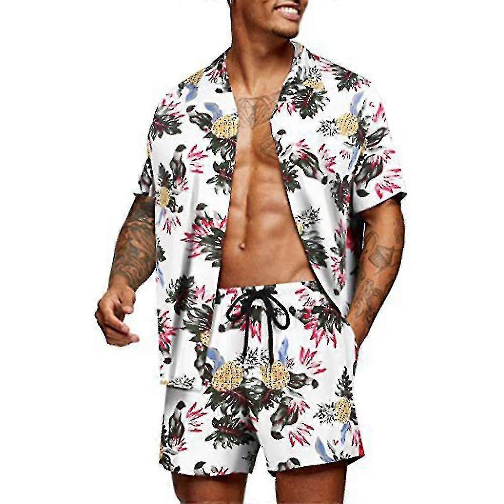 Men's Hawaii Floral Shirts Short Pants Set Summer Beach Holiday Casual Short Sleeve Tops + Shorts Outfit