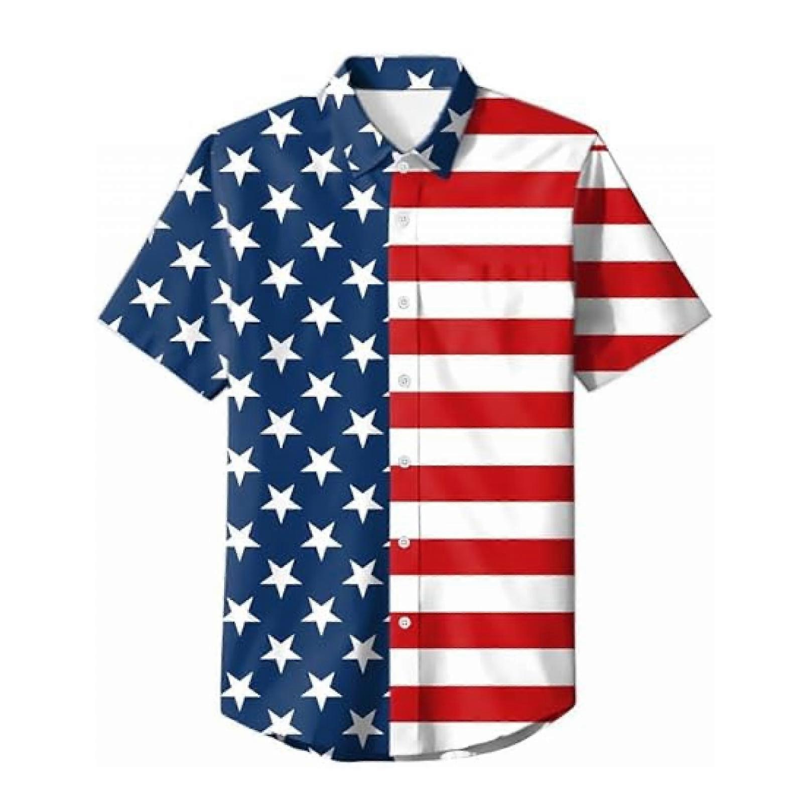 Men's American Flag Shirt 4th of July Short Sleeve Button Up Shirt -GSLA