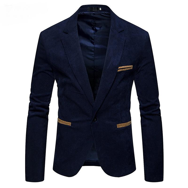 Men's Casual Corduroy Blazer Jacket Slim Fit One Button Work Wear Sport Coat