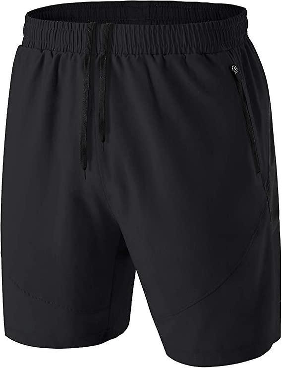 Men's Running Shorts Lightweight Sports Shorts with Zipped Pockets Quick Dry (L) Black