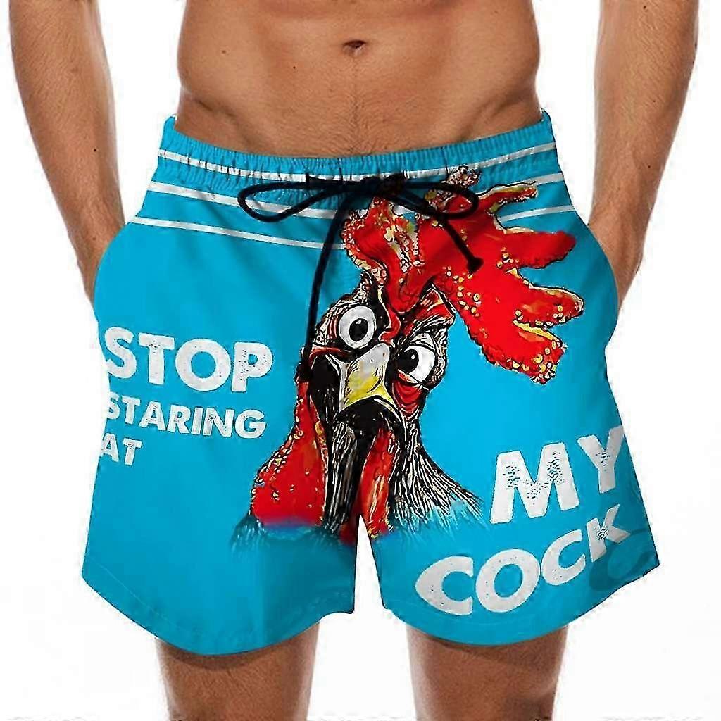 Men's Funny Rooster Print Beach & Swim Shorts, Novelty Board Shorts