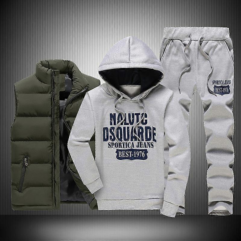 Men's Hooded Letter Pullover Sweater Suit Down Cotton Vest Large Size Three-piece Suit