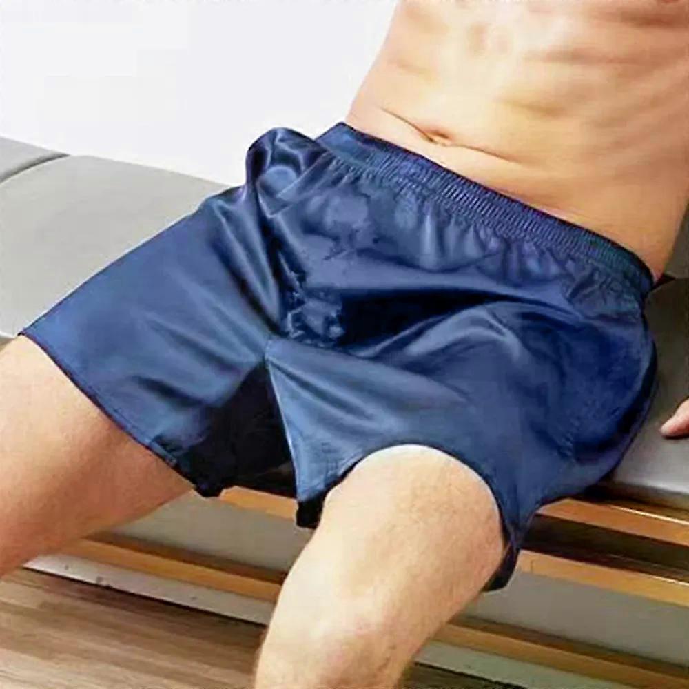 Men'S Pajama Satin Silk Boxers Sexy Boxer Briefs Smooth Silk Pajamas Shorts Loose Split Man Lounge Boxer Shorts L-3Xl