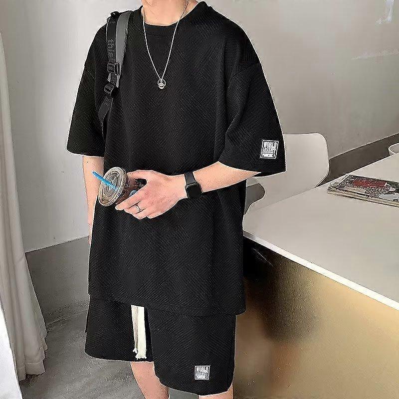 Men's Summer Casual Sports Suit Short Sleeve + Shorts 2 Piece Set