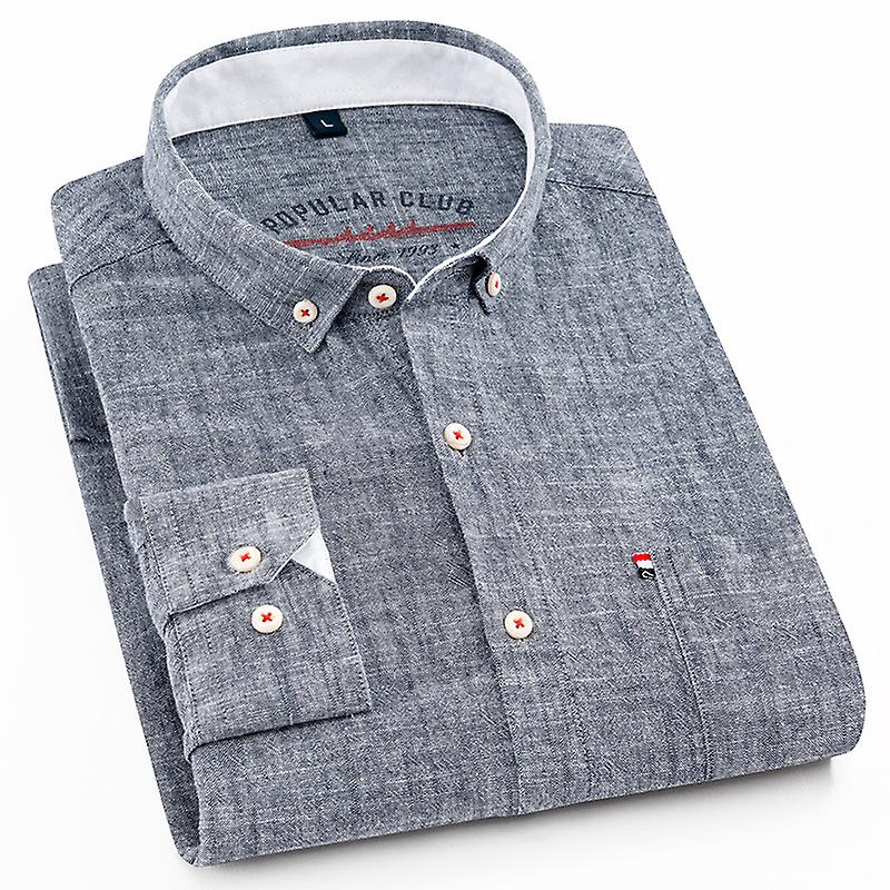 Men's Versatile Casual Long Sleeve Solid Linen Cotton Shirts Single Pocket Button-down Breath Comfortable Soft Slim-fit Shirt