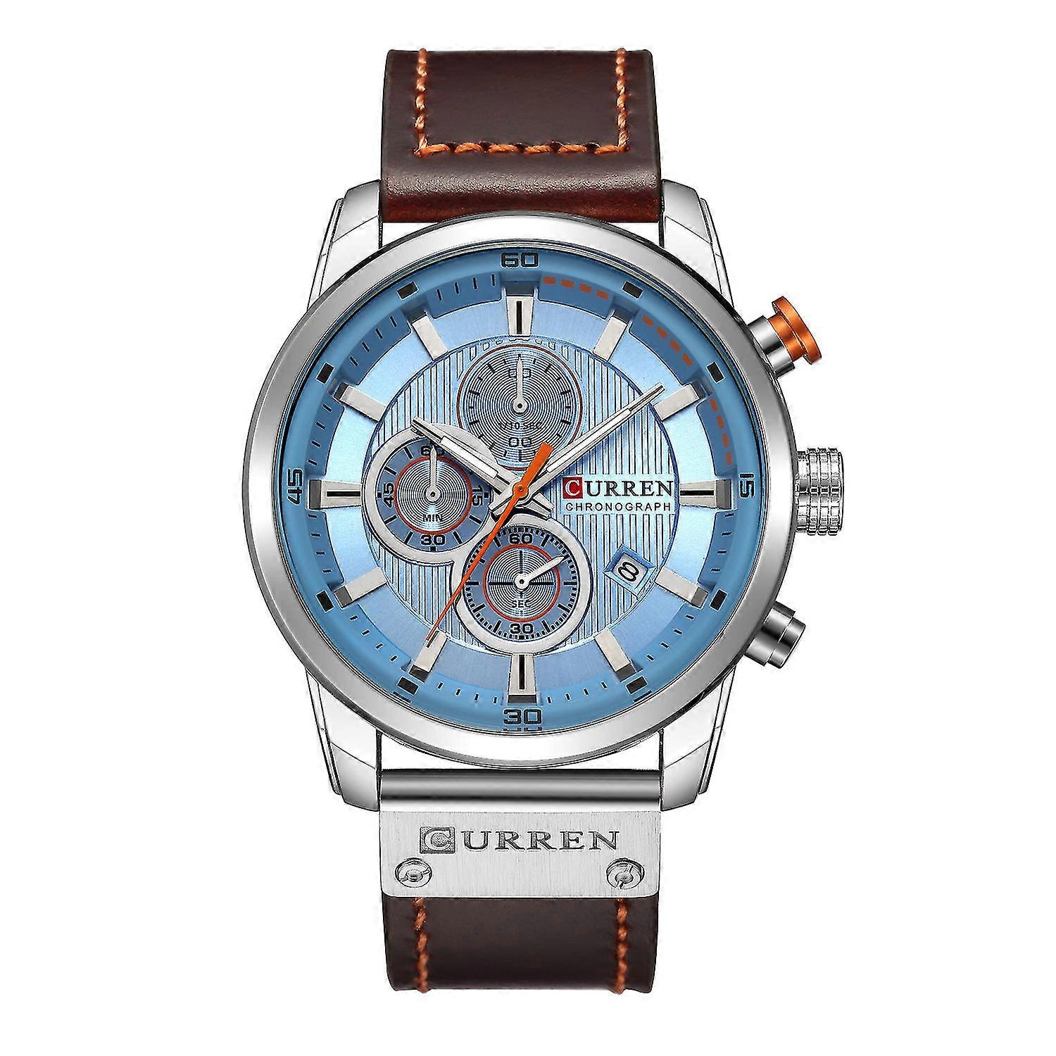 Mens Watches Fashion Waterproof Sports Chronograph Analogue Quartz Stainless Steel Leather Bracelet Wristwatch