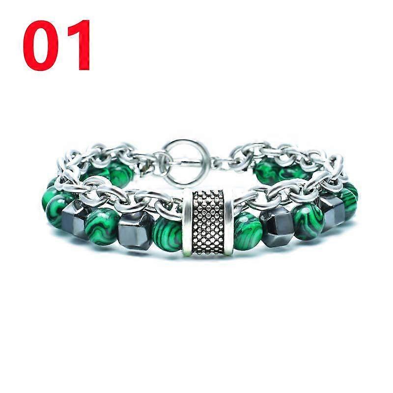 Mens Jewellery Charm Stainless Steel Bracelet For Men Malachite Black Obsidian Tiger Eye Stone Beaded Hip Hop Jewelry Pulseras