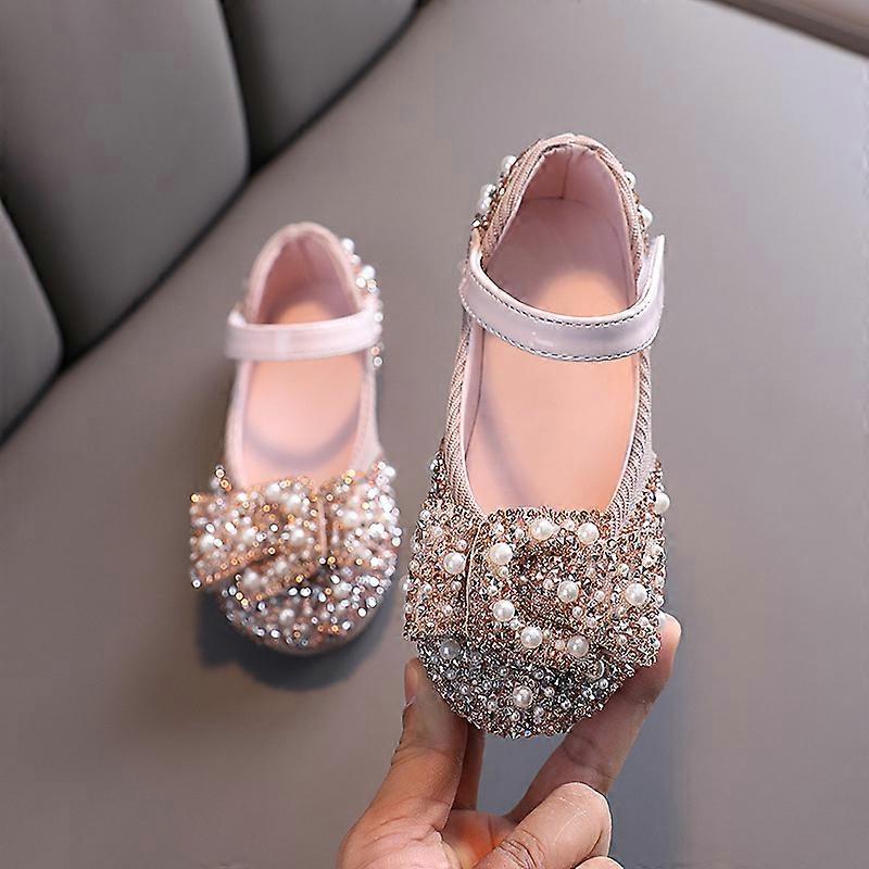 Children's Sequins Sandals Girls Sweet Bow Rhinestone Princess Shoes Fashion Non-slip Flat Kids Soft Bottom Sandals