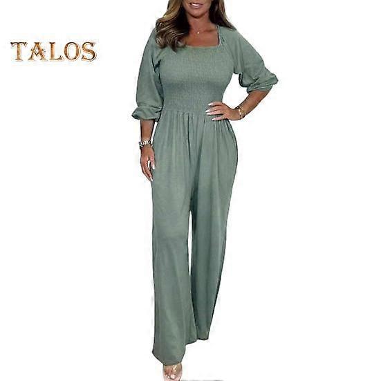 Embrace versatility with this Square-neck, long-sleeved jumpsuit featuring an elasticated waist that hugs your curves in all the right places, suitable for women and girls of all sizes with its loose design and solid color simplicity.