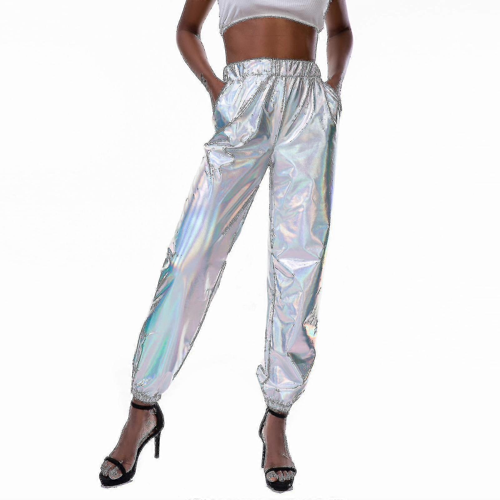 Women's Fashion Holographic Streeear Club Cool Shiny Causal Pants/YY