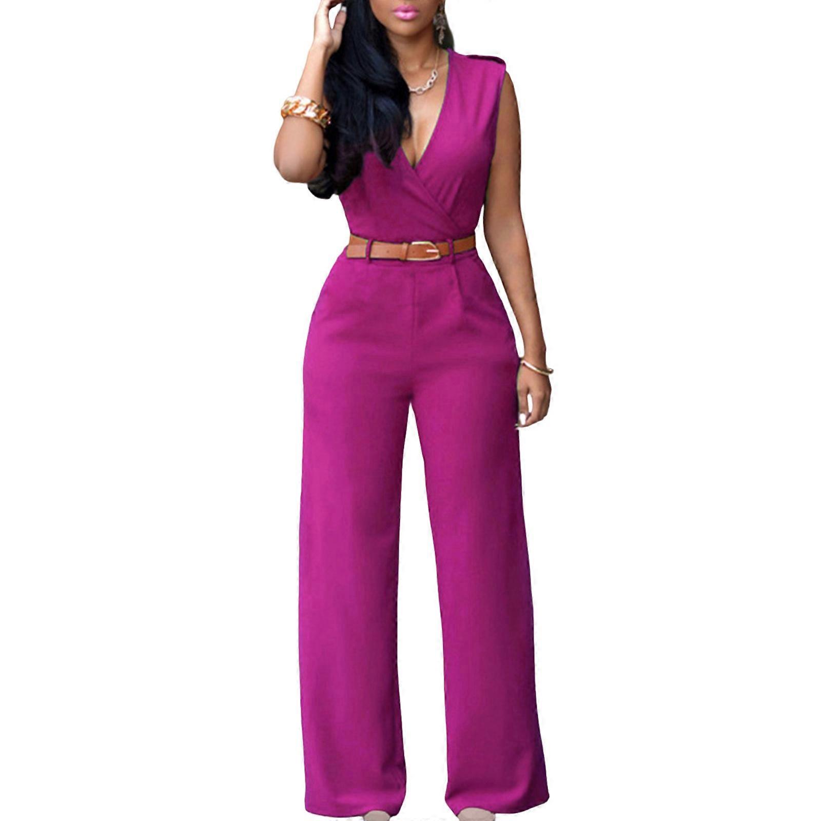 Women\'s Solid Tank Jumpsuit Sleeveless Deep V Neck Wide Leg Long Pants Rompers for Ladies Mom Casual Wearings