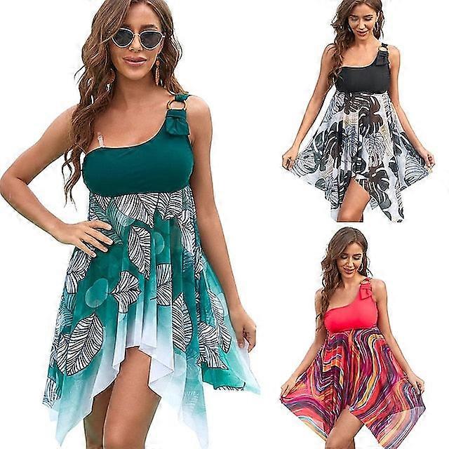 Women's Swimwear Swim Dress Normal Swimsuit 2 Piece Printing Leaf Black Yellow Red Navy Blue Purple Bathing Suits Sports Summer