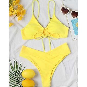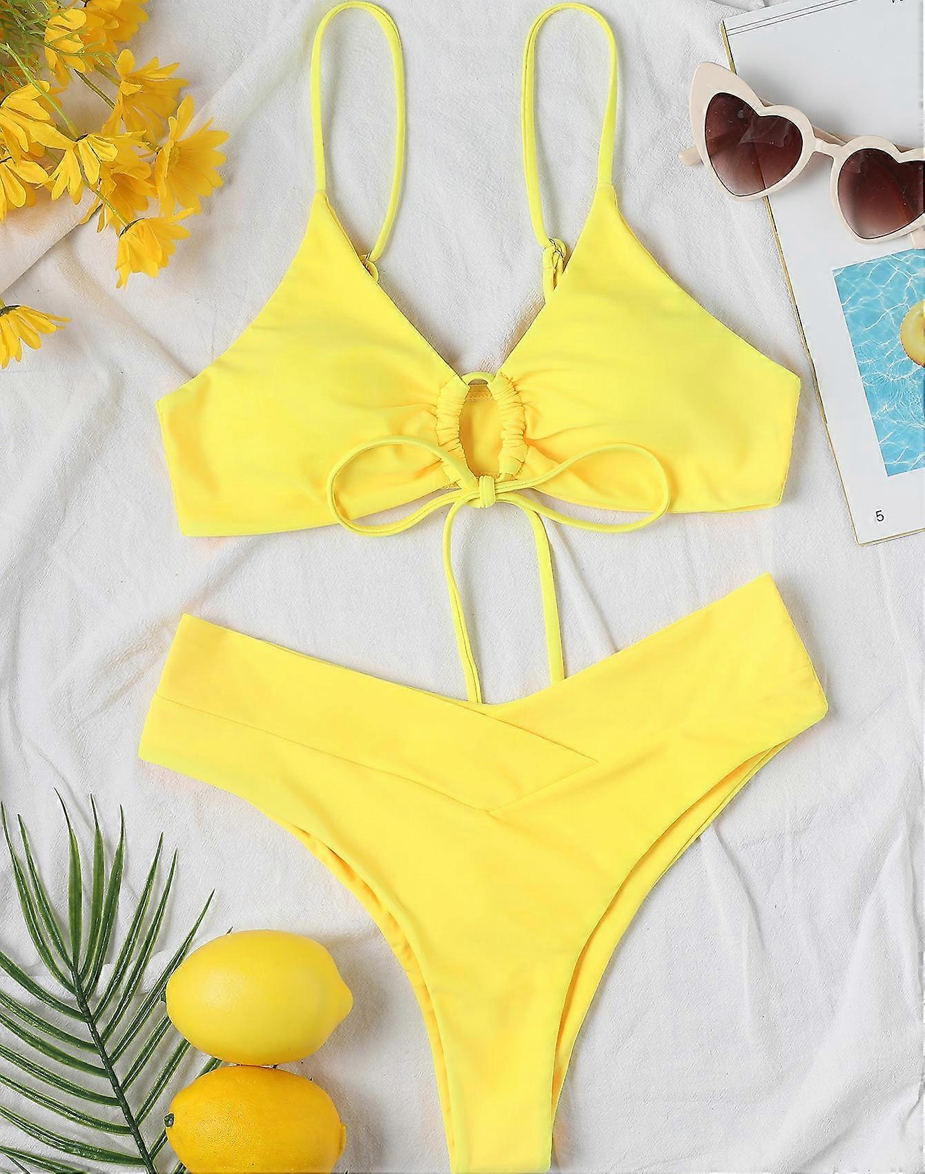 Women's Swimsuit Solid Color Front Tie Sexy Bikini Thong Brazilian Beachwear Bathing Suits 8 Colors