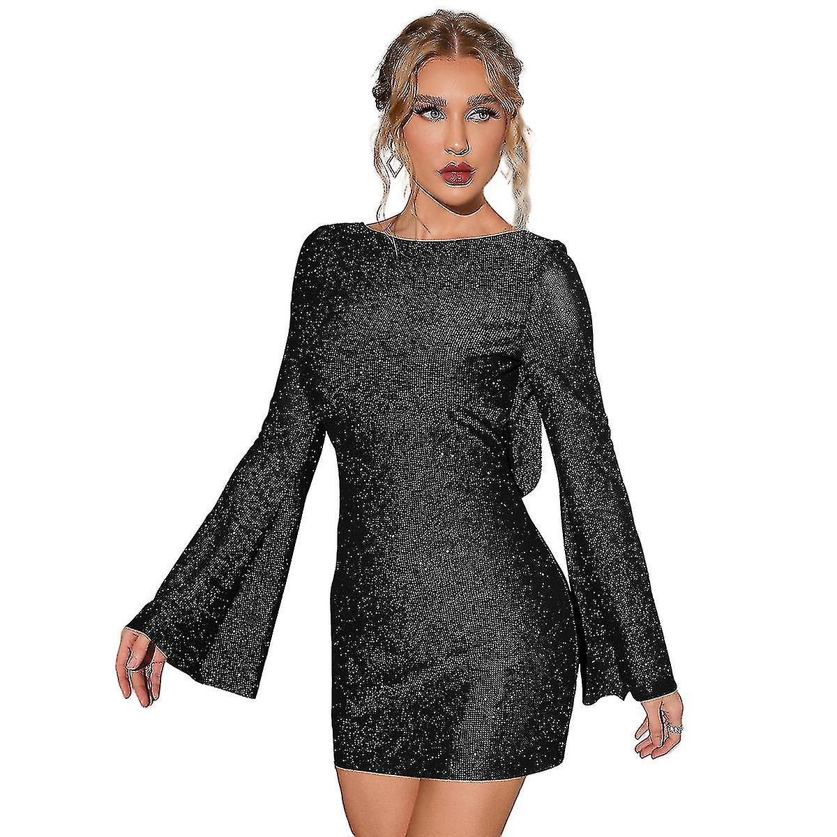 Women's Backless Flounce Sleeve Sparkling Mesh Mini Dress