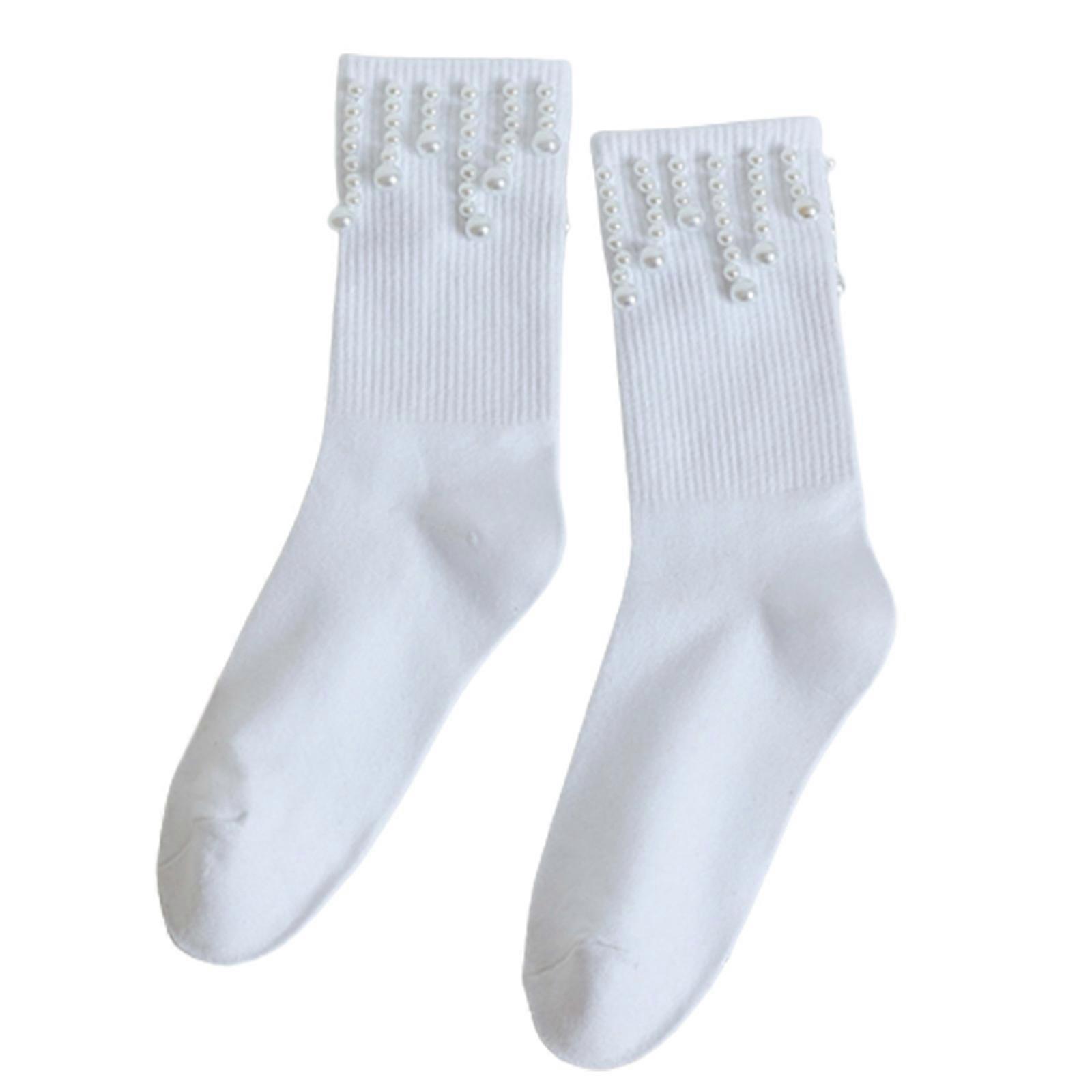 Women's Cotton Crew Socks Above Ankle Socks Pearl Tassels Calf Socks JK Middle Tube Socks Casual Simple Loose Socks Pattern 2 One Size
