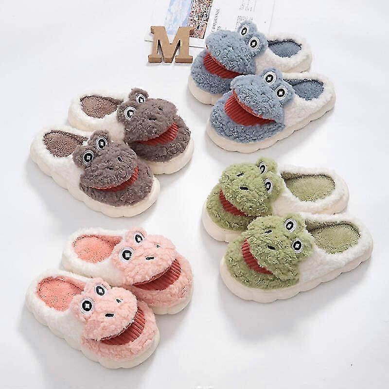 Women's and men's cartoon fleece winter cotton slippers autumn and winter home warm non-slip thick bottom frog slippers