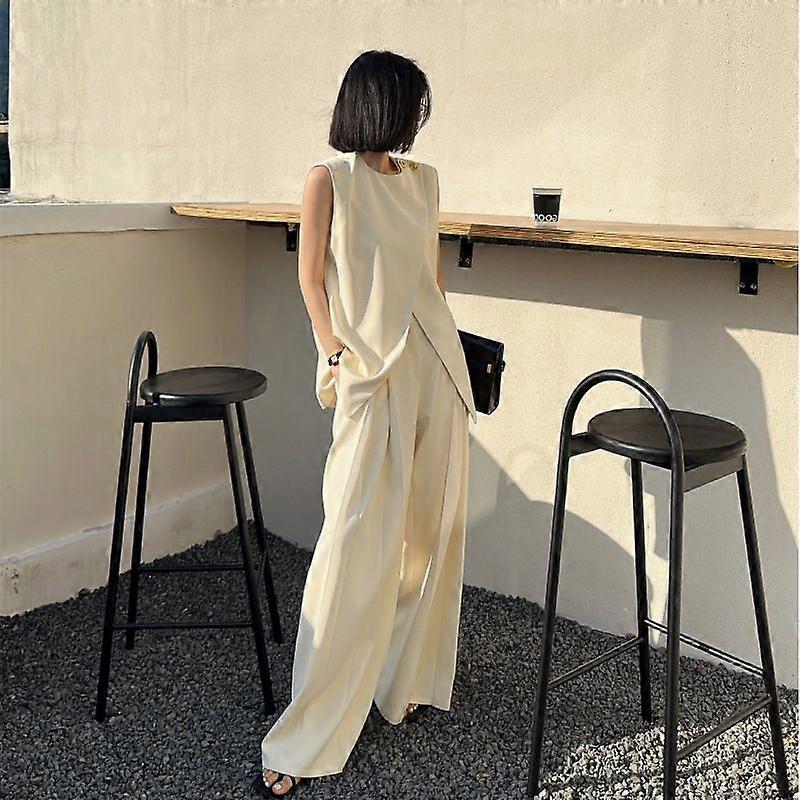 Women's Suit Light Luxury Advanced Perceptual Lightly Mature Sleeveless Top High Waist Wide Leg Pants Summer Wear Fashion Two-Piece Suit