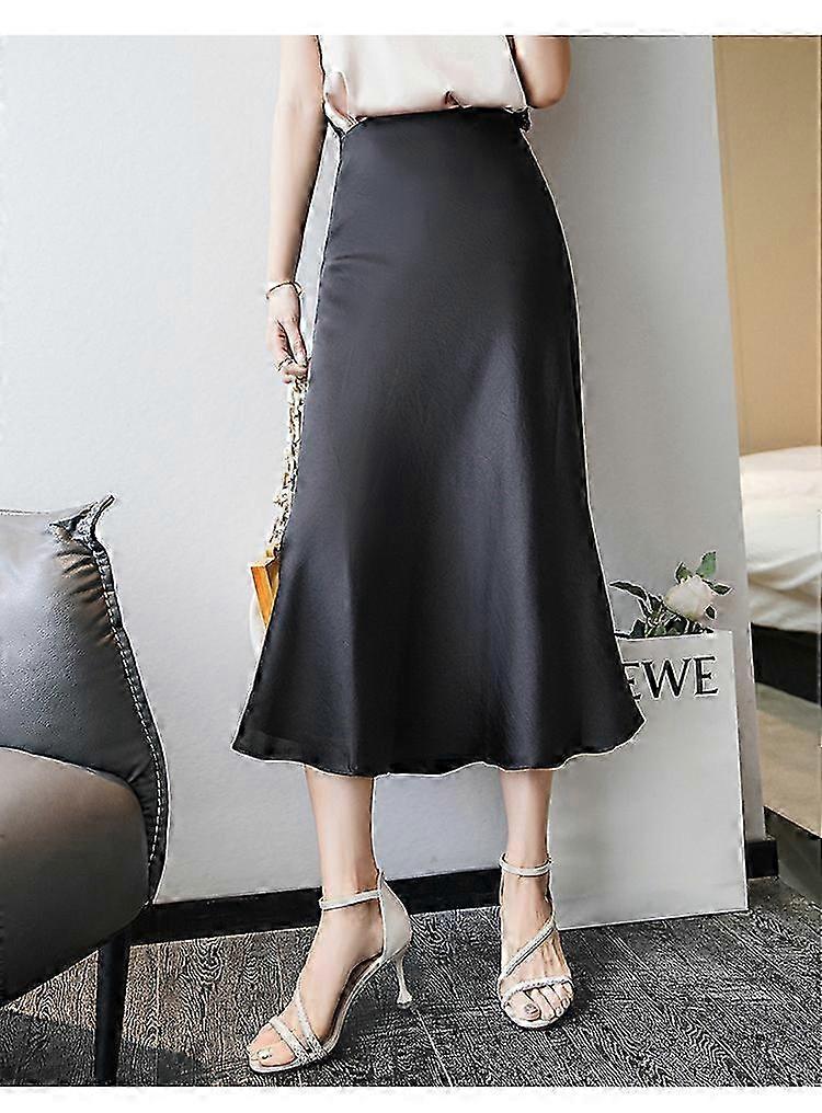 Women's Summer Skirt Black A-line Silk Satin Skirts Beautiful Elegant Midi High-waisted Long Skirts Woman Skirts Black Skirt
