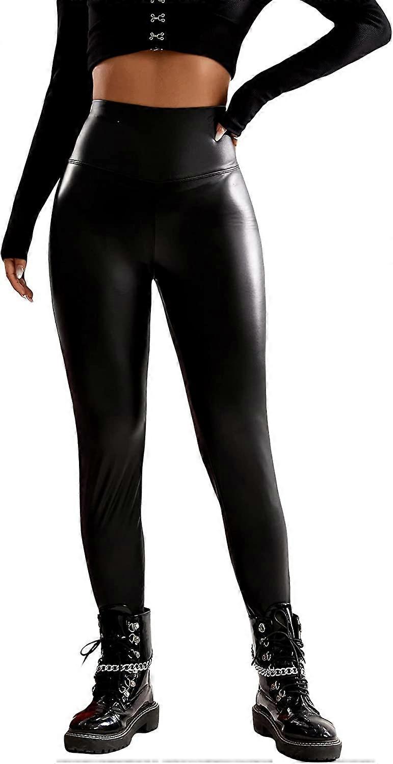 Women's Faux Leather Leggings Pants High Waisted Leather Stacked Pants S-3XL