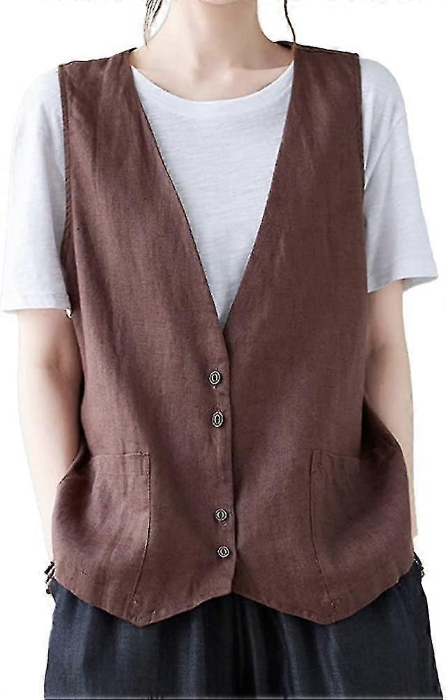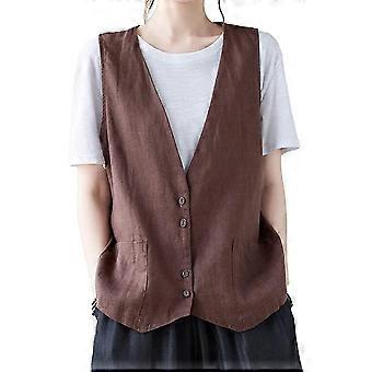 Womens Cotton Linen Vest Casual Sleeveless Blazer Cardigans Jacket Waistcoat