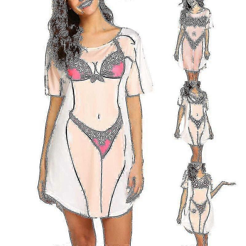 Women's Bikini Shirt Cover Up Print Cover-up T Shirt Dress Fun Wear-YNP