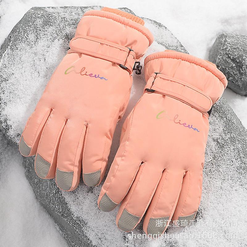 Women's Five-finger Ski Touch Screen Gloves Fashion English Wind And Skid Fleece Lined Padded Warm Keeping