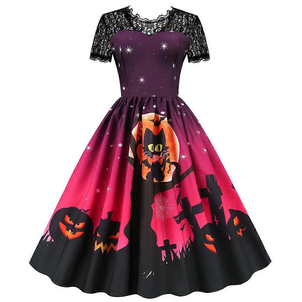 Women's Halloween Lace Temperament Casual Short Sleeve Slim Positioning Printed Swing Party Dresses