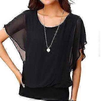 בגדי ריקוד נשים משוחרר יום יומי שרוולים קצרים שרוול עטלף שיפון עליון חולצה קצרה