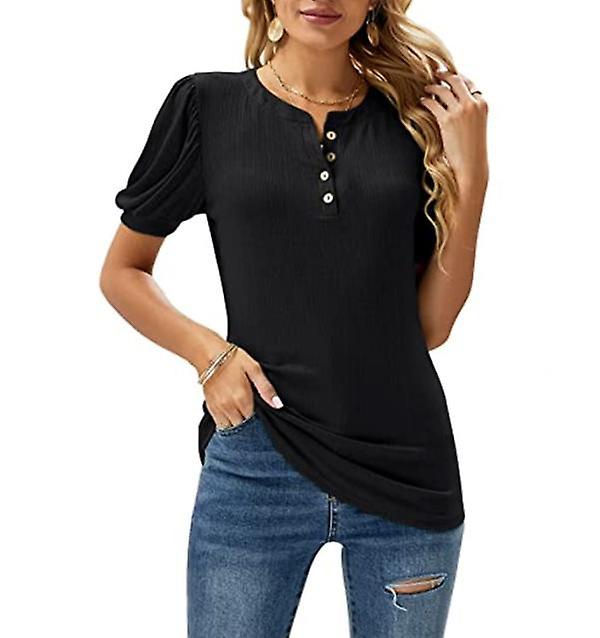 Women's New Puff Short Sleeve Casual Top Crew Neck Classic Rib Shirt T Shirt