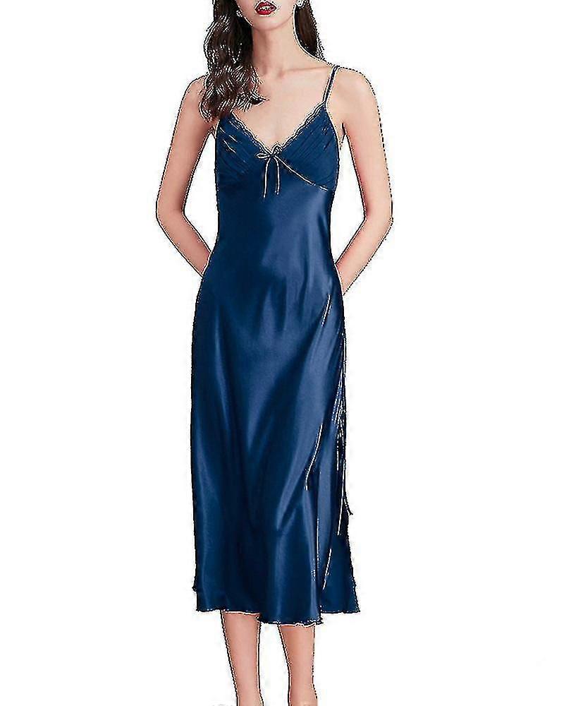 Womens Satin Nightgowns Long Chemise Sexy Sleeveless Side Slip Nightdress Spaghetti Strap Sleepwear Gd