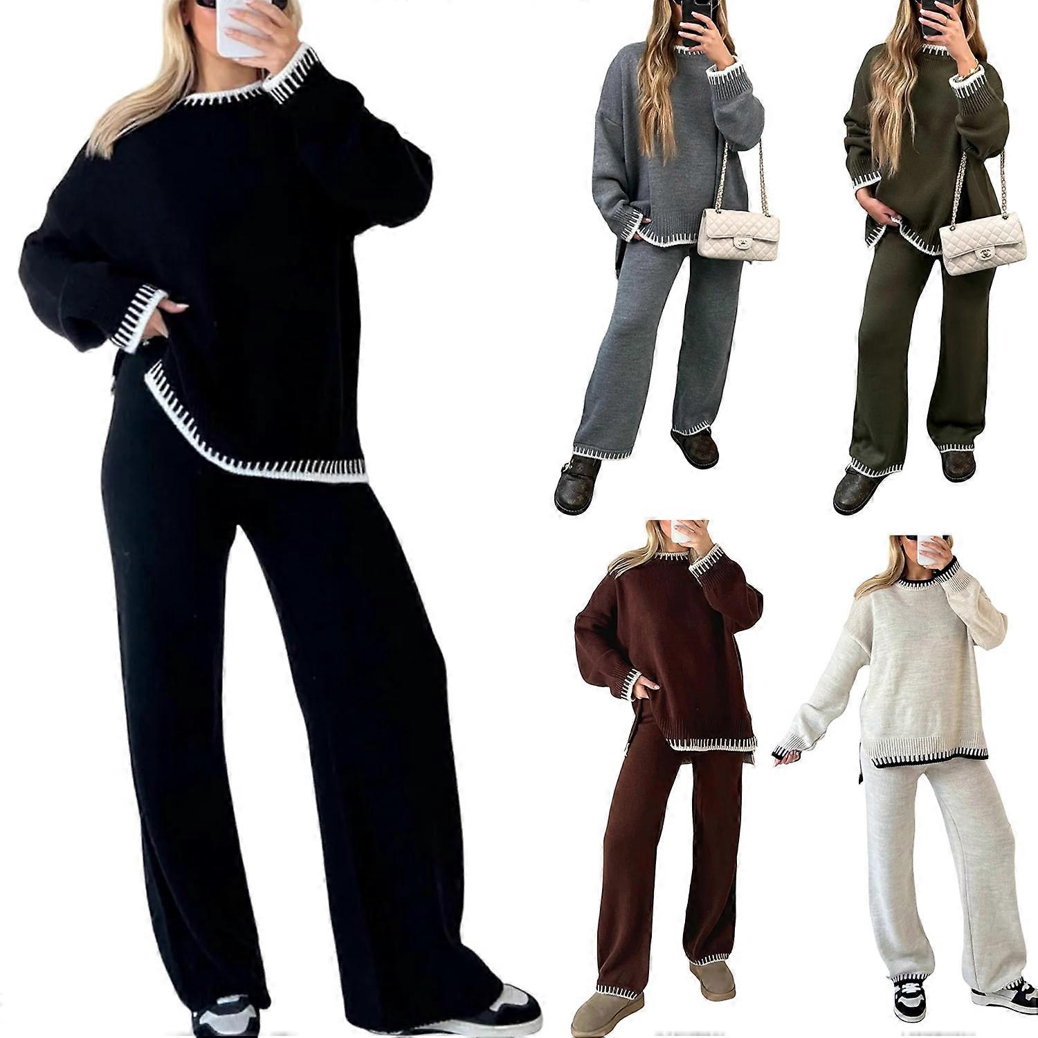Women's 2 Piece Sweater Sets Outfits Long Sleeve Knit Pullover Tops Wide Leg Pants Lounge Sets Tracksuits 2024