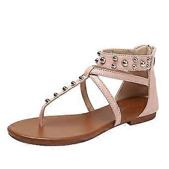 בגדי ריקוד נשים סנדלי ניטים רוכסן סטראפי קרסול גבוה שטוח סנדלים נעליים