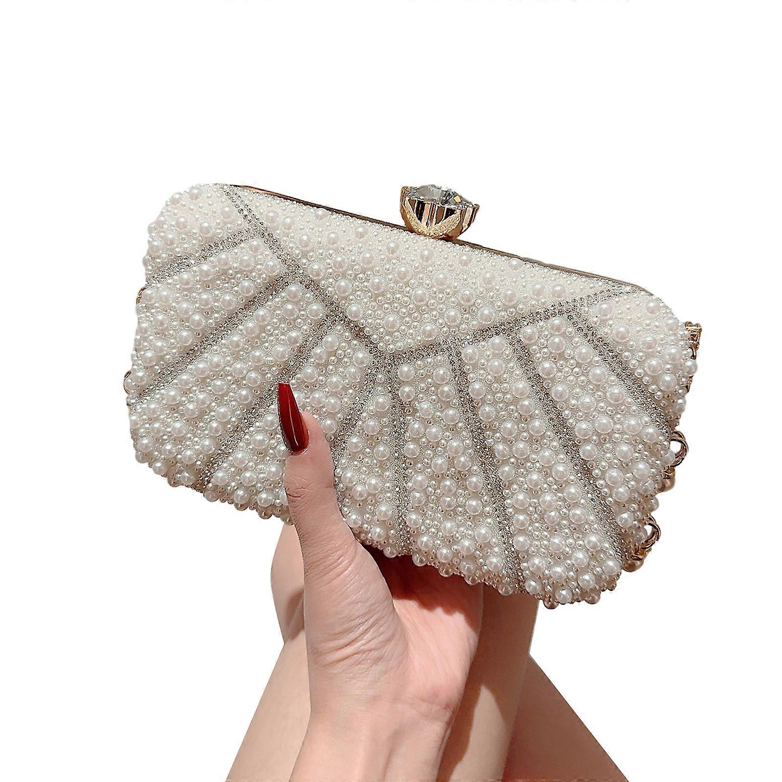 Womens Evening Clutch Bag Beaded Pearl Handbag Elegant Clutch Purse Small Shoulder Bag Party Wedding Purses Clutch Bag White