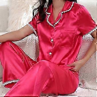 Women's Pajama Butterfly Cherry Print Satin Pijama Set Short Sleeve Buttons Top Elastic Waistband Pants Sleepwear Loungewear