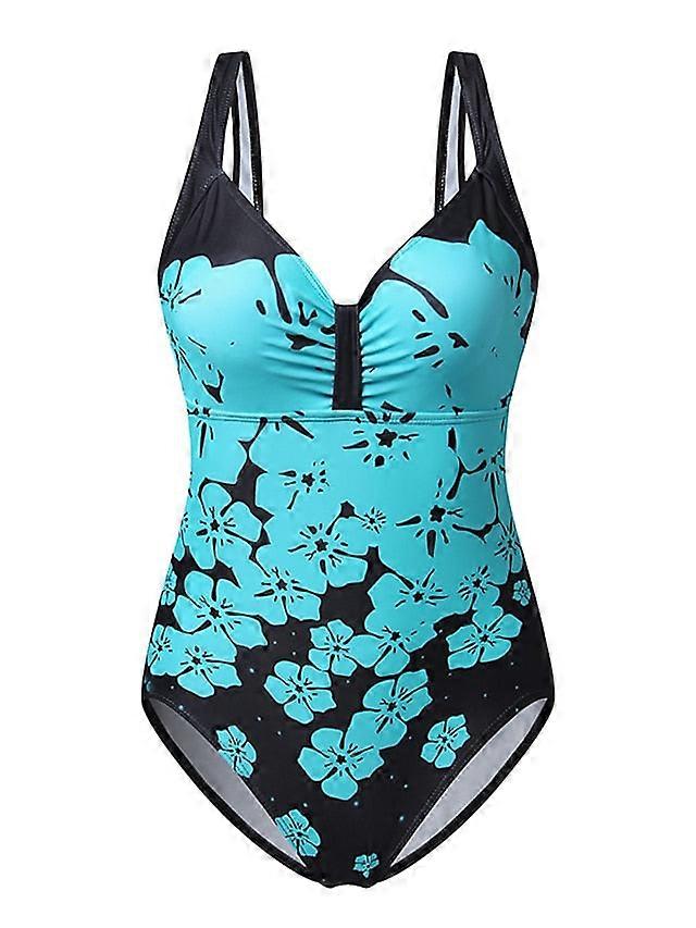Women's Floral Print One Piece Monokini Swimsuit - High Waisted, Padded, V Wire, Sexy, Sporty