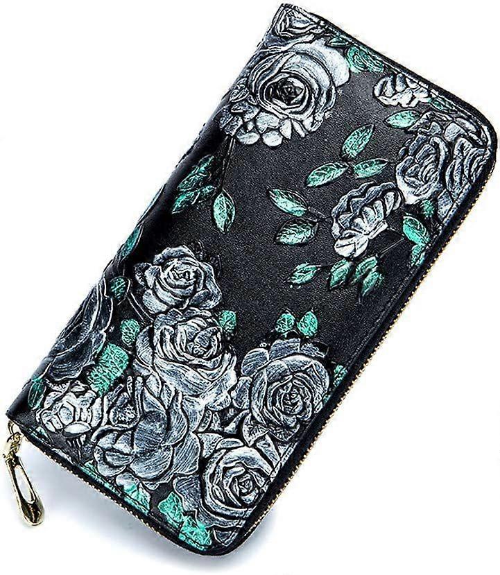 Women's Rose Flower Long Leather Wallet 3D Stereo Multi-card Floral Wallet (santanxing)
