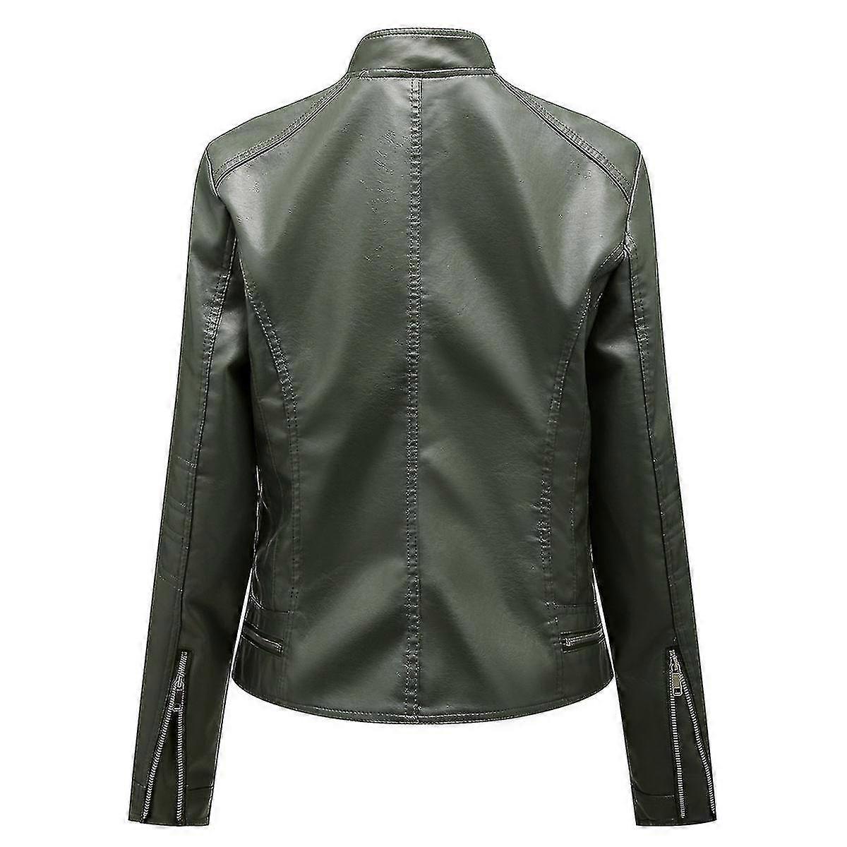 Women's Solid Color Stand Collar Zip Slim Short Leather Jacket