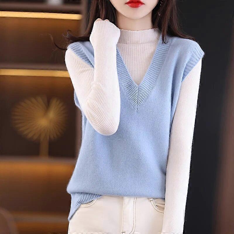 Women's Korean Sleeveless Knit V-Neck Sweater Vest Spring and Autumn New Elegant Loose Solid Color Casual Fashion Wool Pullover