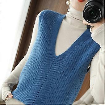 Women's Korean Pullover Sweater Sleeveless Vest Autumn And Winter Hollow V-Neck Solid Color Loose Fashion Knitted Waistcoat