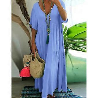 Women's Summer Fashion V-neck Solid Color Large Size Loose Long Large Swing Short-sleeved Dress