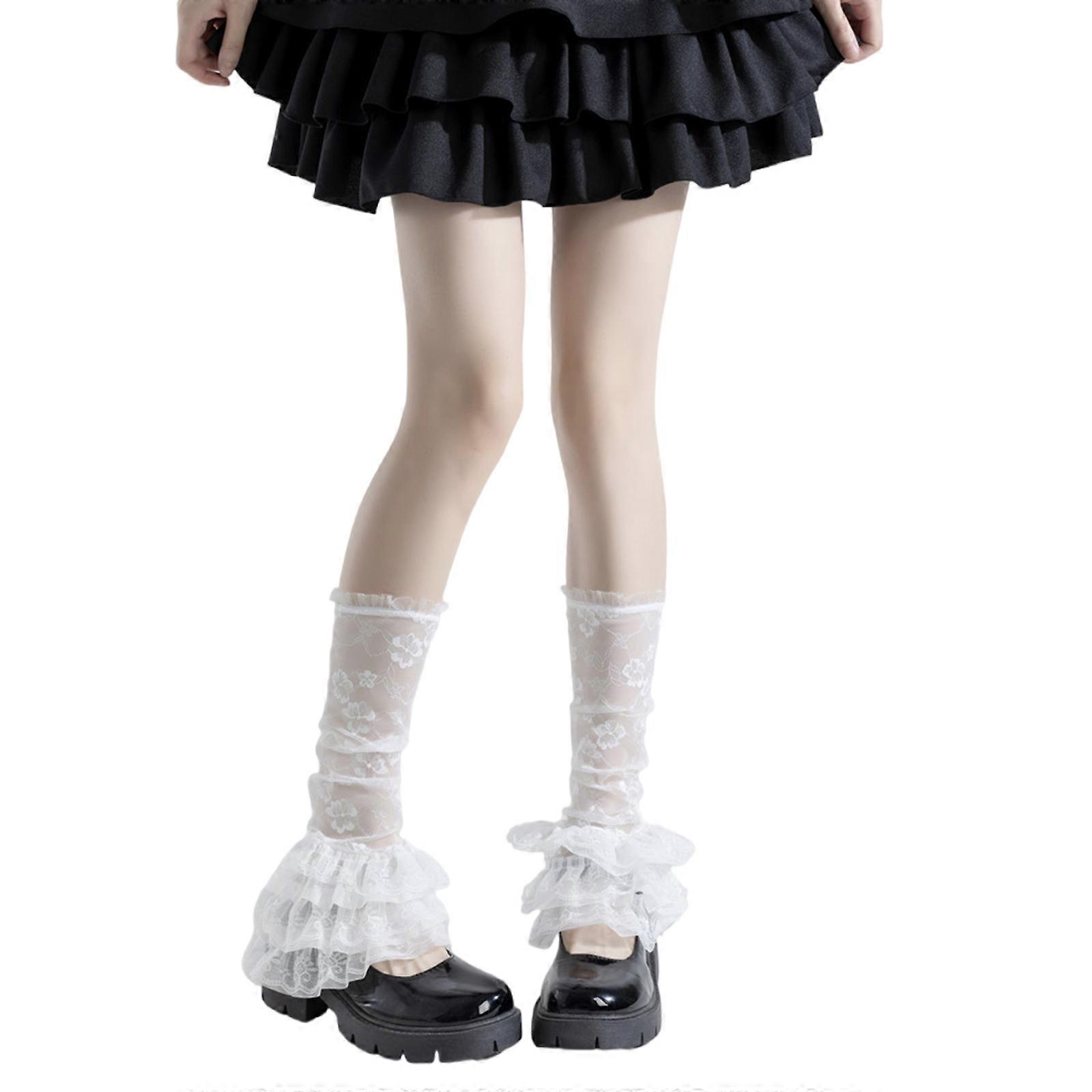 Women's Tiered Ruffle Lace Leg Warmer Sweet Knee Highs Leg Socks Princess Sheer Leg Warmer Summer Thin Leg Sleeves Gift White