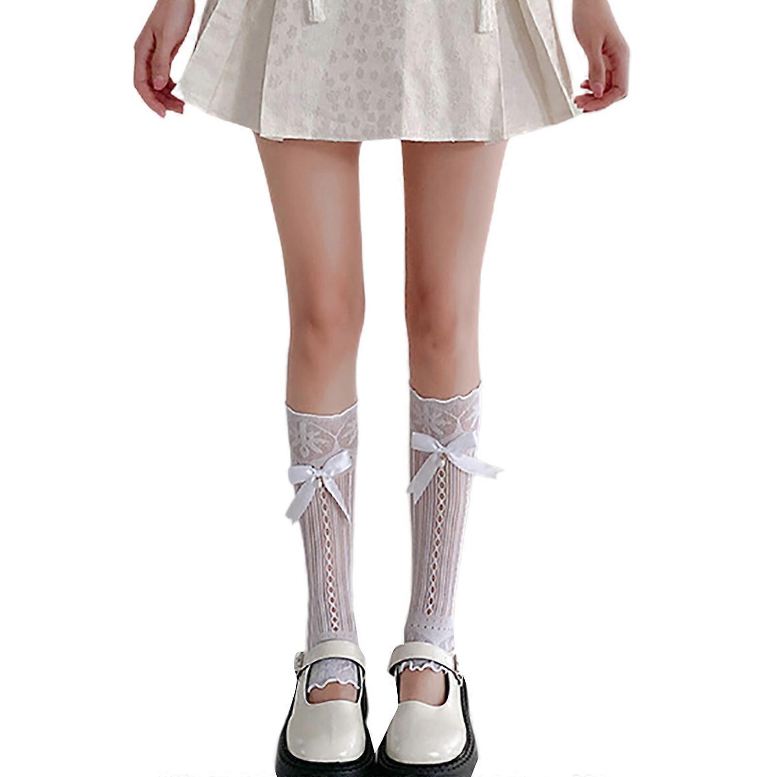 Women's Ruffle Lace Leg Warmer Knee Highs Socks Summers Leg Sleeves Ballets Bows Leg Socks 90s Harajuk Streetwears Gift White