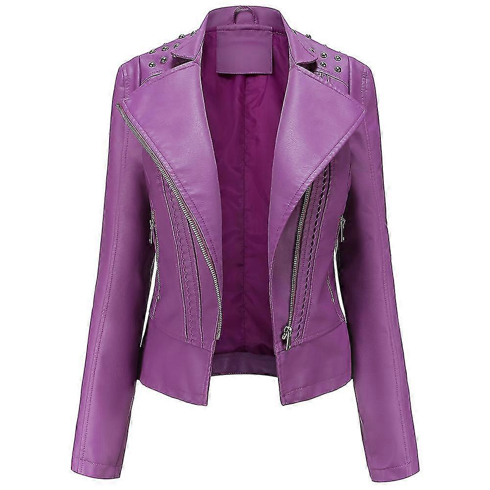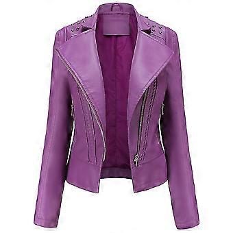Women's Solid Color Rivet Zip Slim Fit Cropped Leather Jacket