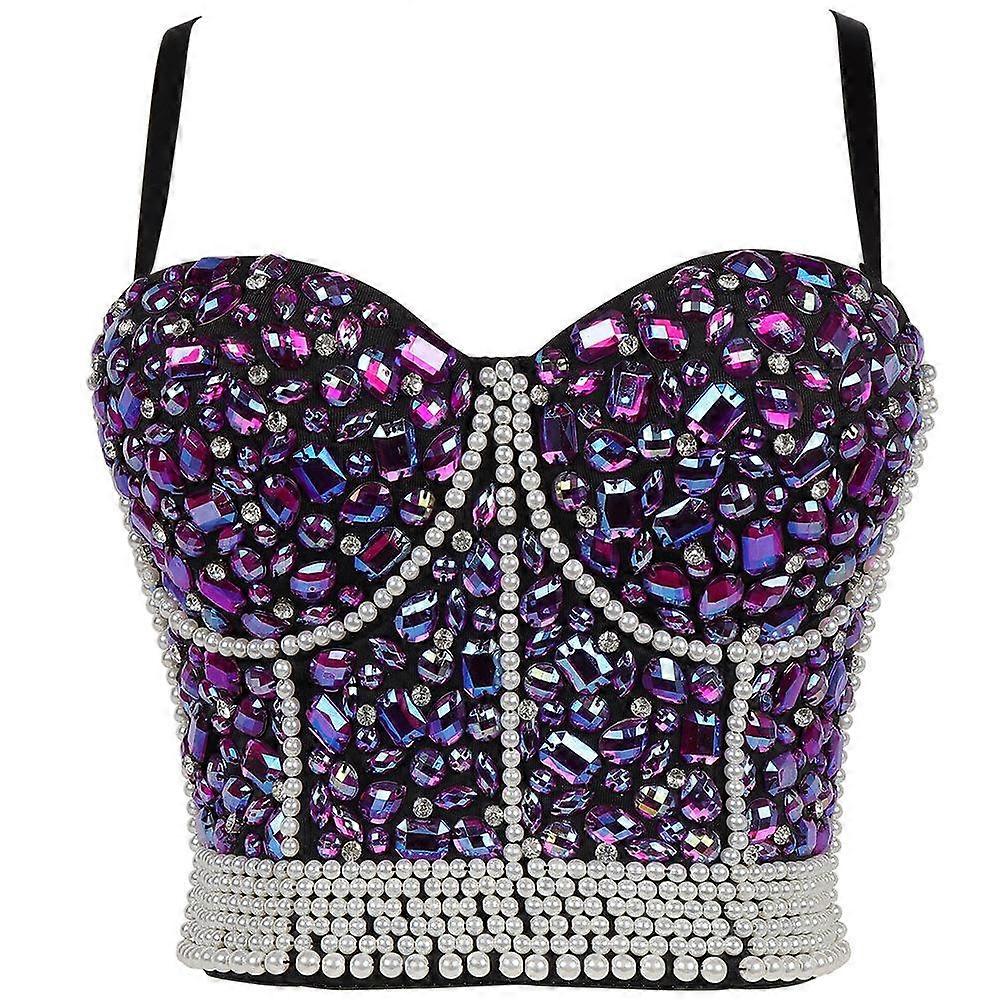 Women's Rhinestone Push Up Bra Sexy Punk Diamond Bra