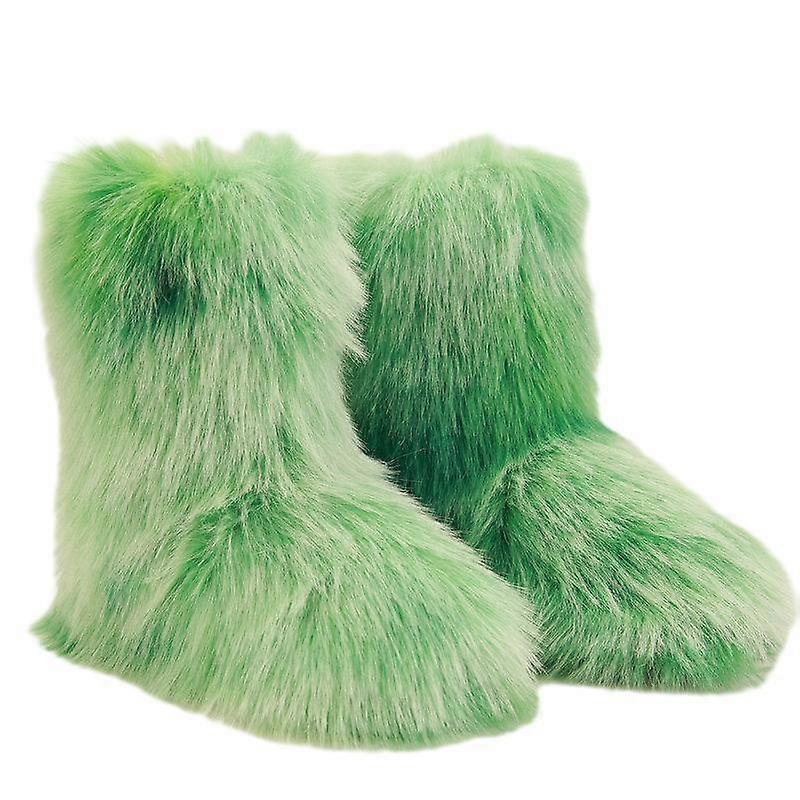 Women's Fluffy Mid Calf Plush Winter Snow Boots Outdoor Flat Shoes
