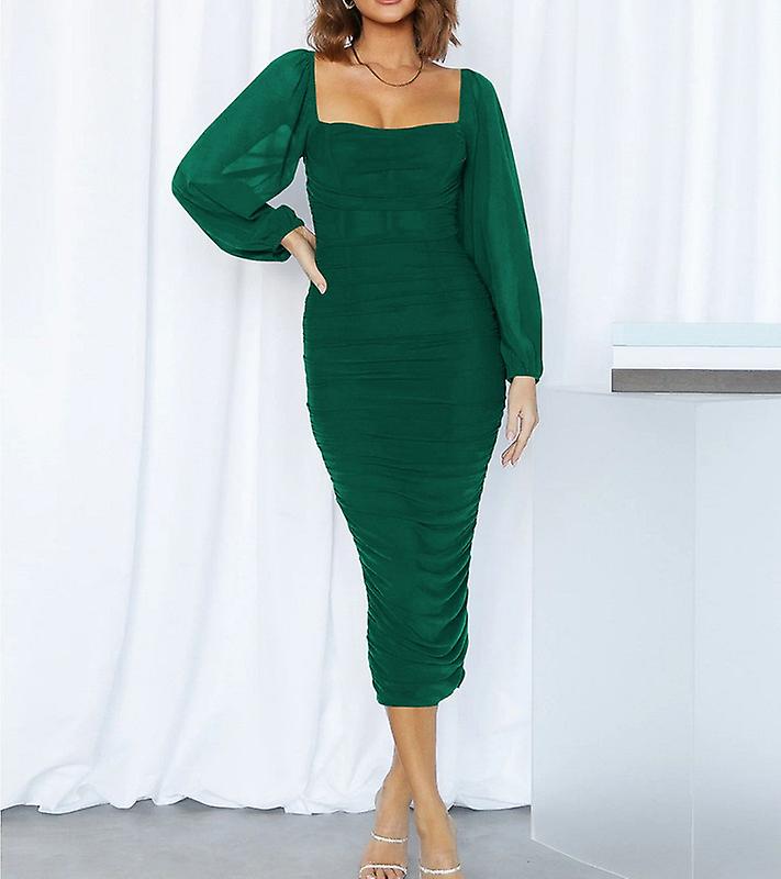 Women's Ruched Wrap Dress Long Sleeve Midi Bodycon Dresses