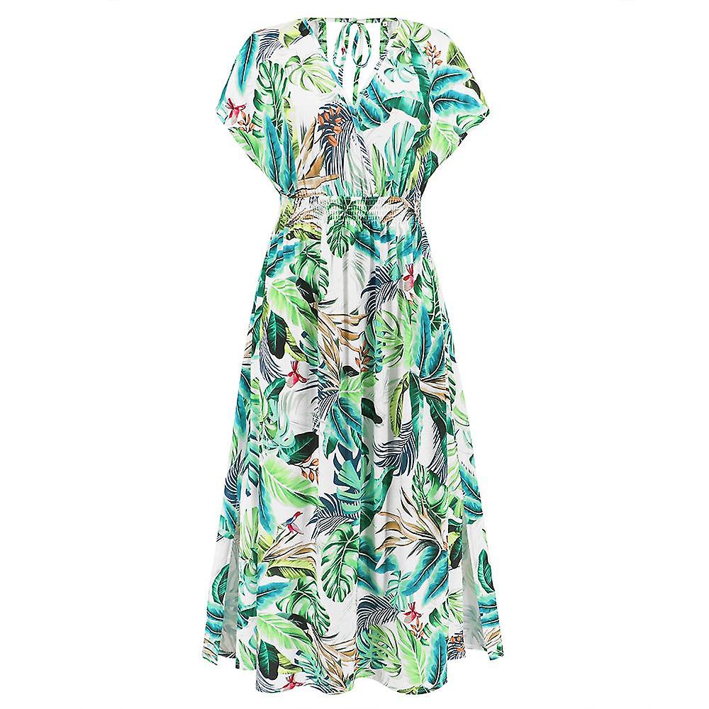 Women's Bat Sleeve V Neck Open Back Lace All Match Print Dress