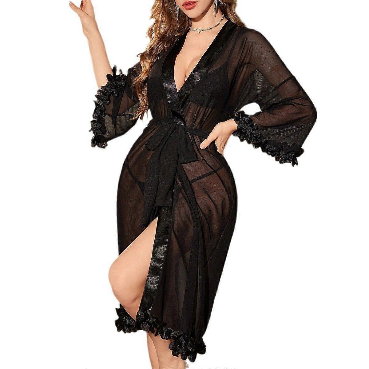 Women's Floral Sleeve Belted Sleep Robe Bridal Wedding Lingerie
